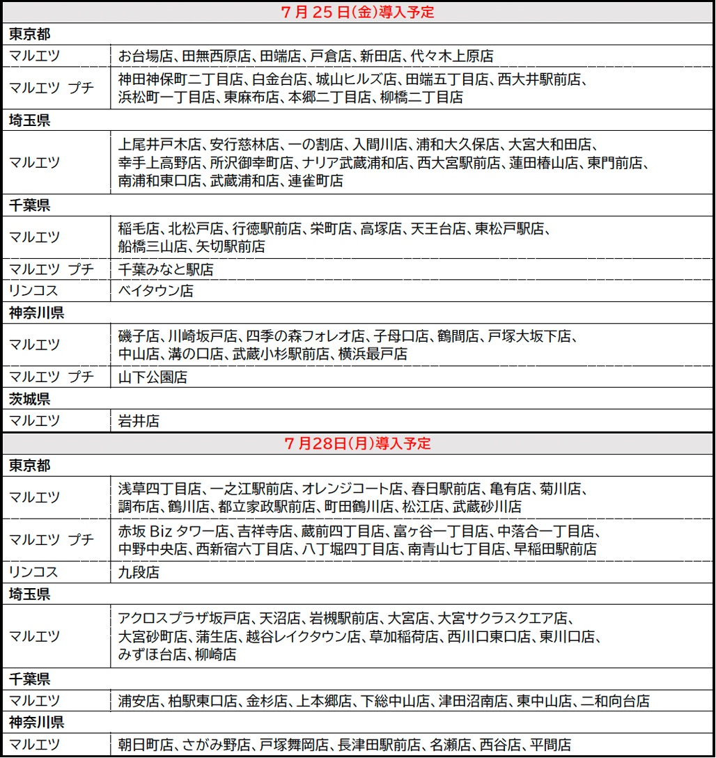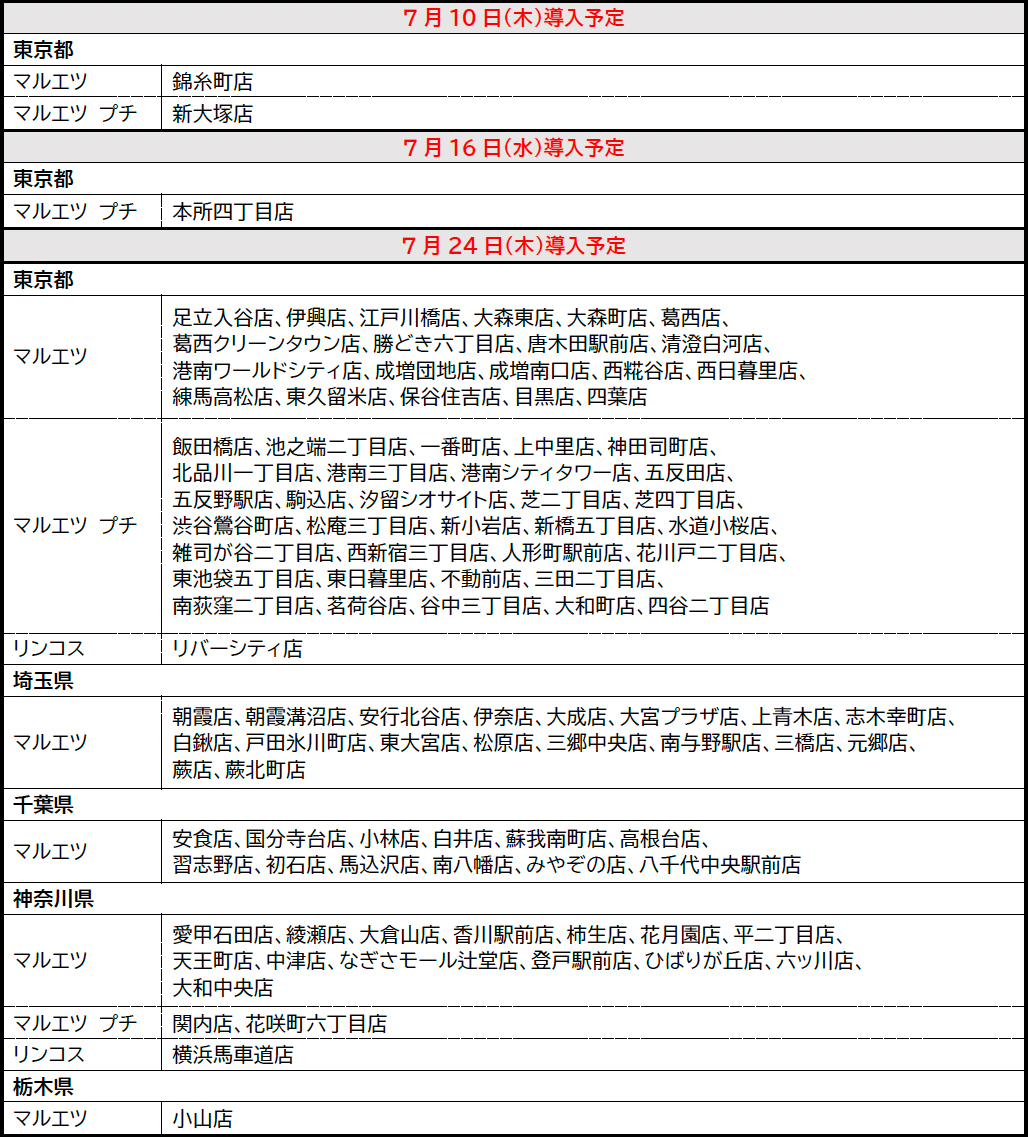 7月10日(木)から錦糸町店(東京都墨田区)、新大塚店(東京都豊島区)で導入いたします。