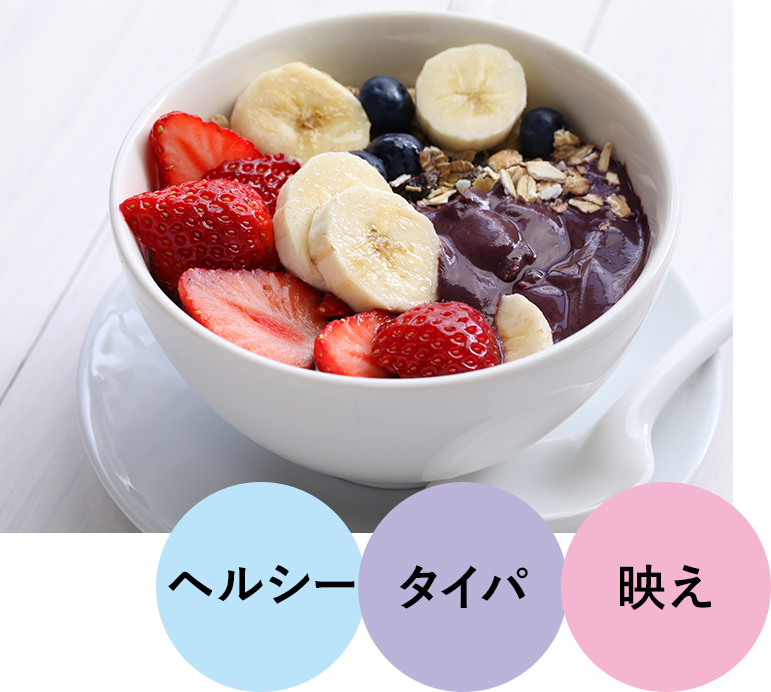 ブラジル原産のスーパーフード・アサイーを使ったヘルシーなスイーツで、フルーツやグラノーラをトッピングした見た目の鮮やかさが特徴。栄養価が高く、美容や健康志向にもフィット。2010年代にハワイ発のトレンドとして広まり、2024年には韓国経由のブームとして再ブレイクした。